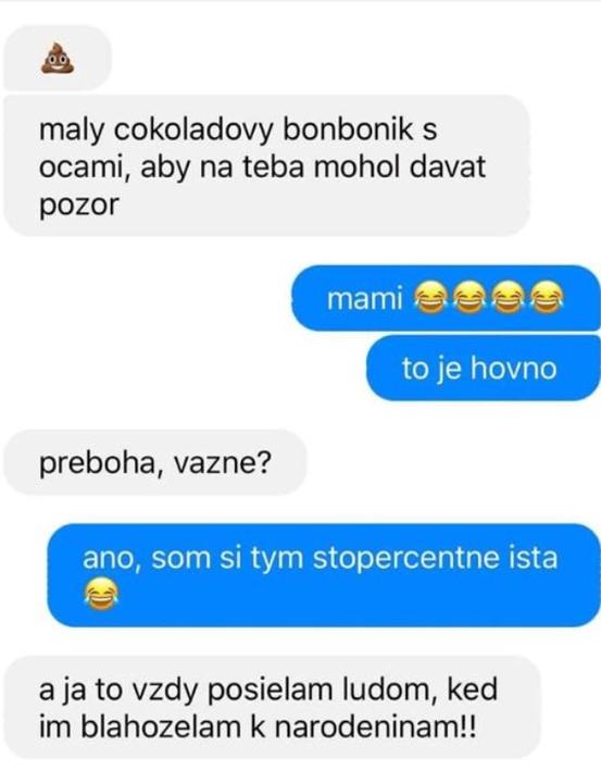 Tenhle nikdy nezklame 😂 Úplně vidím svoji mamku jak rozesílá všem hovínka pro štěstí a nemůžu se přestat smát. 😂