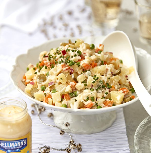 U nás dělala každý rok salát kucharka mamka pro celou rozsáhlou rodinu a vždy byl výborný. Nyní uz tu bohužel není tak bude dělat salát poprvé sama...VAŘENÉ BRAMBORY, CELER, MRKEV,CIBULE,PETRŽEL, HRÁŠEK, KYSELA OKURKA, VAJÍČKO, SALÁM GOTHAJ, MAJONÉZA, LŽIČKA HOŘČICE, SŮL, PEPŘ A CUKR.