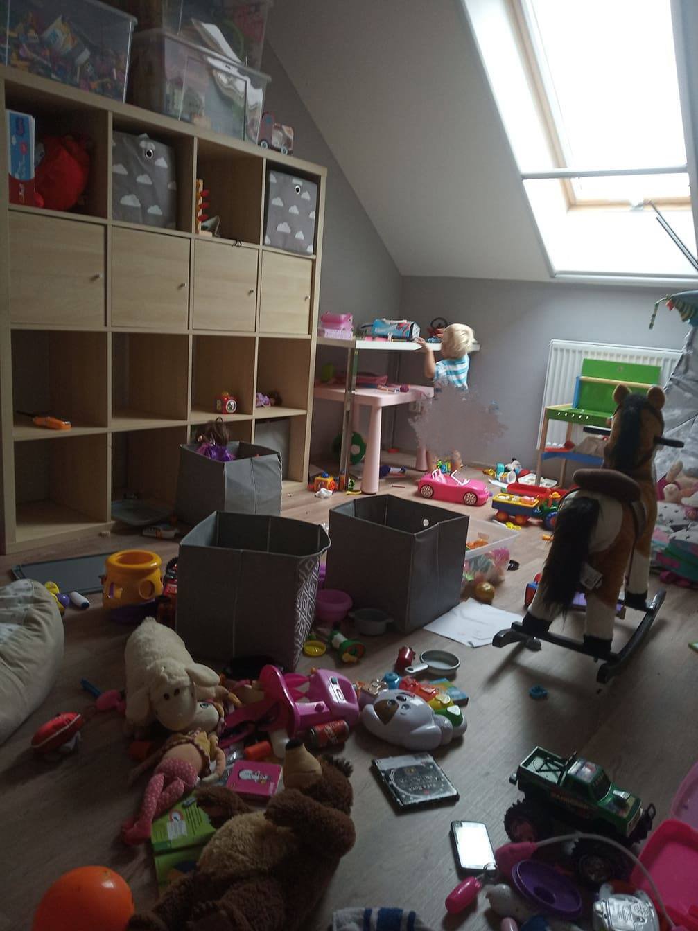 Abyste si nemyslely, že u nás to je vždy sluníčkový, prdíme duhu a nezanecháváme drobky, tak vám dnes představuji veledílo mých dětí, rukama kterých se pokojík změnil na dračí doupě. No a tak jsem se konečně hecla, zrušila TeePee, ve kterém spal akorát tak pes a to taky jen občas, zredukovala opět hračky a malinko jim to tam přeskládala. Takže naše před a po.