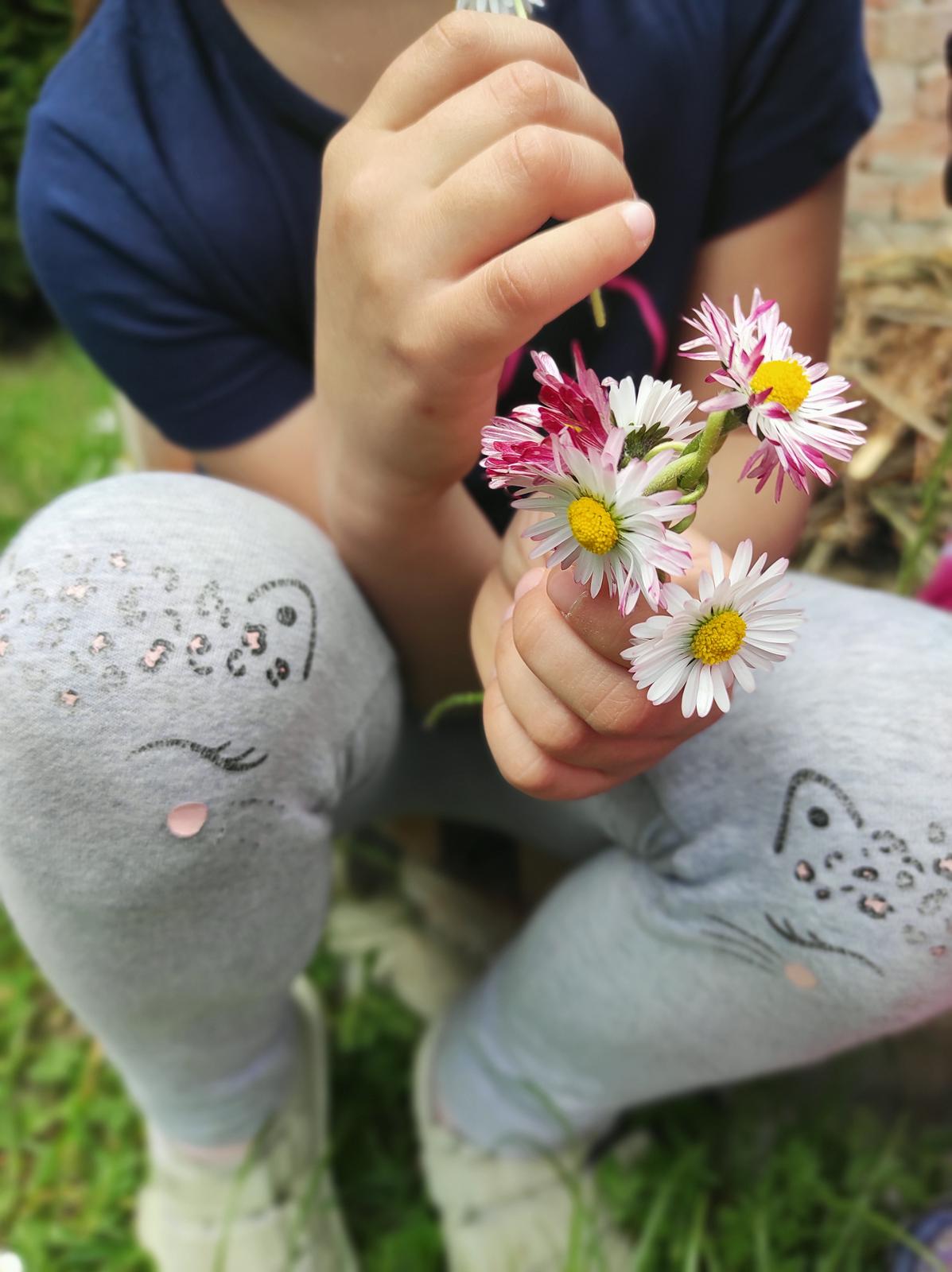 Moje dítě se učí plést věneček ♥️ A docela jí to jde.