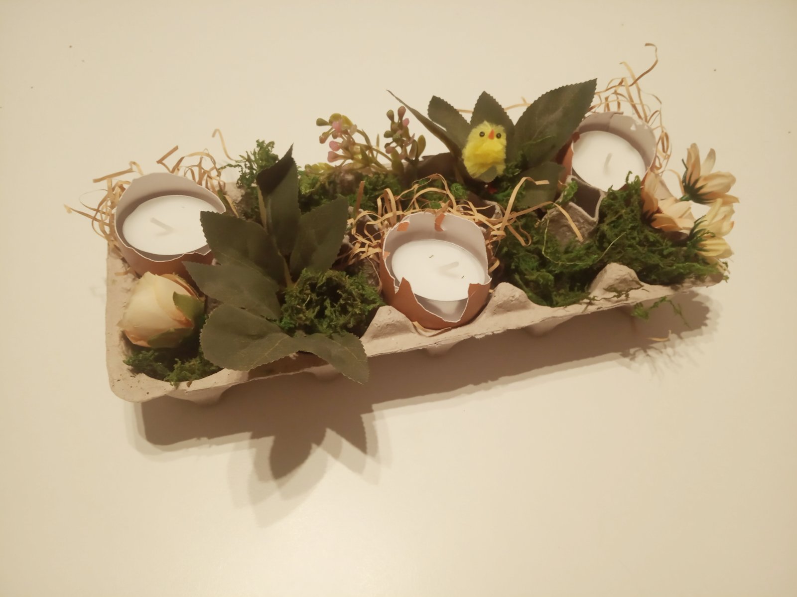 Prostě nám chyběla velikonoční dekorace na stůl... Manžel myslel, že mi totálně hráblo, když jsem v devět večer začala rozbíjet naše pracně vyfoukaná vajíčka. Ale s výsledkem jsem spokojená. Děkuji @dominika_c za inspiraci.
