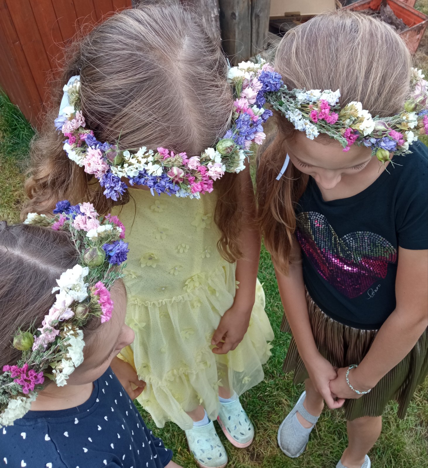 Čelenky pro holky na oslavě. Jen ze sušeného materiálu z mého políčka.