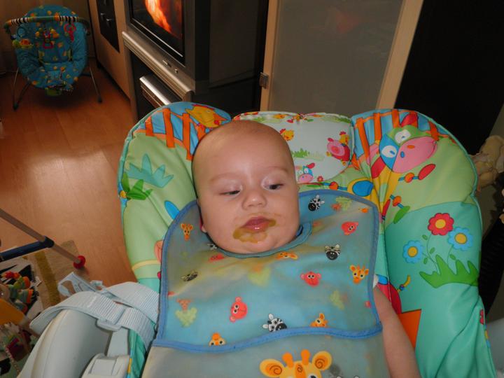 Dneska měl Davídek poprvé jablečnou přesnídávku, snědl pár lžiček, ale chutnalo 🙂