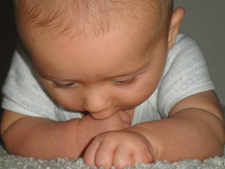 Už týden má Davídek dost nevrlou náladu, nic se mu nelíbí :( Hrozně moc slintá, tak jestli zoubky, ale nepřijde mi :(