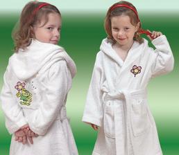 Dětský bavlněný župánek s kapuckou od tradičního českého výrobce Davídek. Župánky jsou z jemného walk froté ze 100 % bavlny. Jsou tedy krásně savé a hodí se skutečně po koupeli, anebo když chodíte s dětmi na bazén. Župánek je bílé barvy s výšivkou s pohádkovými motivivy. Na přední straně s malou výšivkou a na zadní straně pak s výšivkou větší.