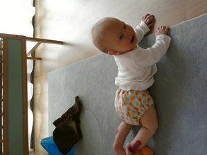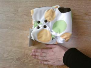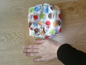 Přestože jsou plenky Swaddlebees a Blueberry (kromě Minky) velmi štíhlé, reálně nejsou vhodné pro úplné novorozeně a menší děti (ale to není vůbec žádná jednovelikostní plenka) . Je vhodná skutečně až od 4,5 kg, a i tak bude trošku robustnější. Pro menší miminka anebo pokud máte zájem začít látkovat hned jak přijdete z porodnice, jsou vhodnější novorozenecké velikosti. Níže uvádím několik fotek, pro lepší představu jednotlivých velikostí. Plenka na 7 měsíčním miminku, 7,1 kg. Má oblečenou Econappi - sepnutá na střední velikost.