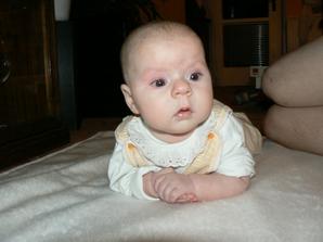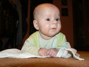 Leden 2007 - objevil jsem nožičky a hraji si s nimi a začal jsem držet hlavičku a beru věci do ručičky.