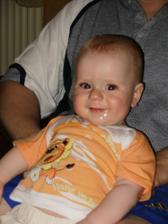 Na za 3 dny mi bude rok a už umím dělat papa, "malá", ukážu jak jsem velký, dělám čertíka, paci paci. Říkám Máma, bába, táta, děda, papa, nene. Jde mi krásně se čílit, hlavně když mi někdo něco zakazuje... Začínám se pouštět maminčiny ruky, ale zatím své nožičky moc jisté nemám, tak se radši držím.