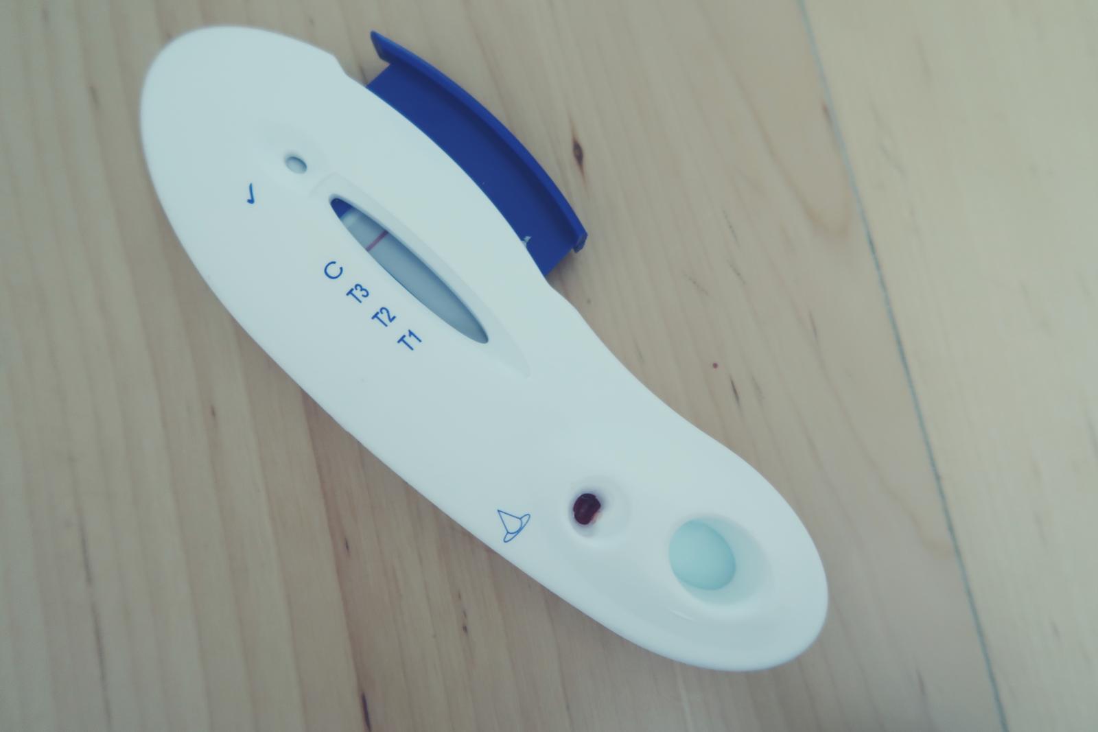 Co se týká samotného testování, vše také probíhalo jako u železa, tj se odebrala kapička krve, smíchala se s roztokem a kápnula kapátkem do testu. Píchnutí touto oranžovou lancetou navíc opravdu nebolí (ač vám může manžel tvrdit něco jiného:D). Za mně opět super!