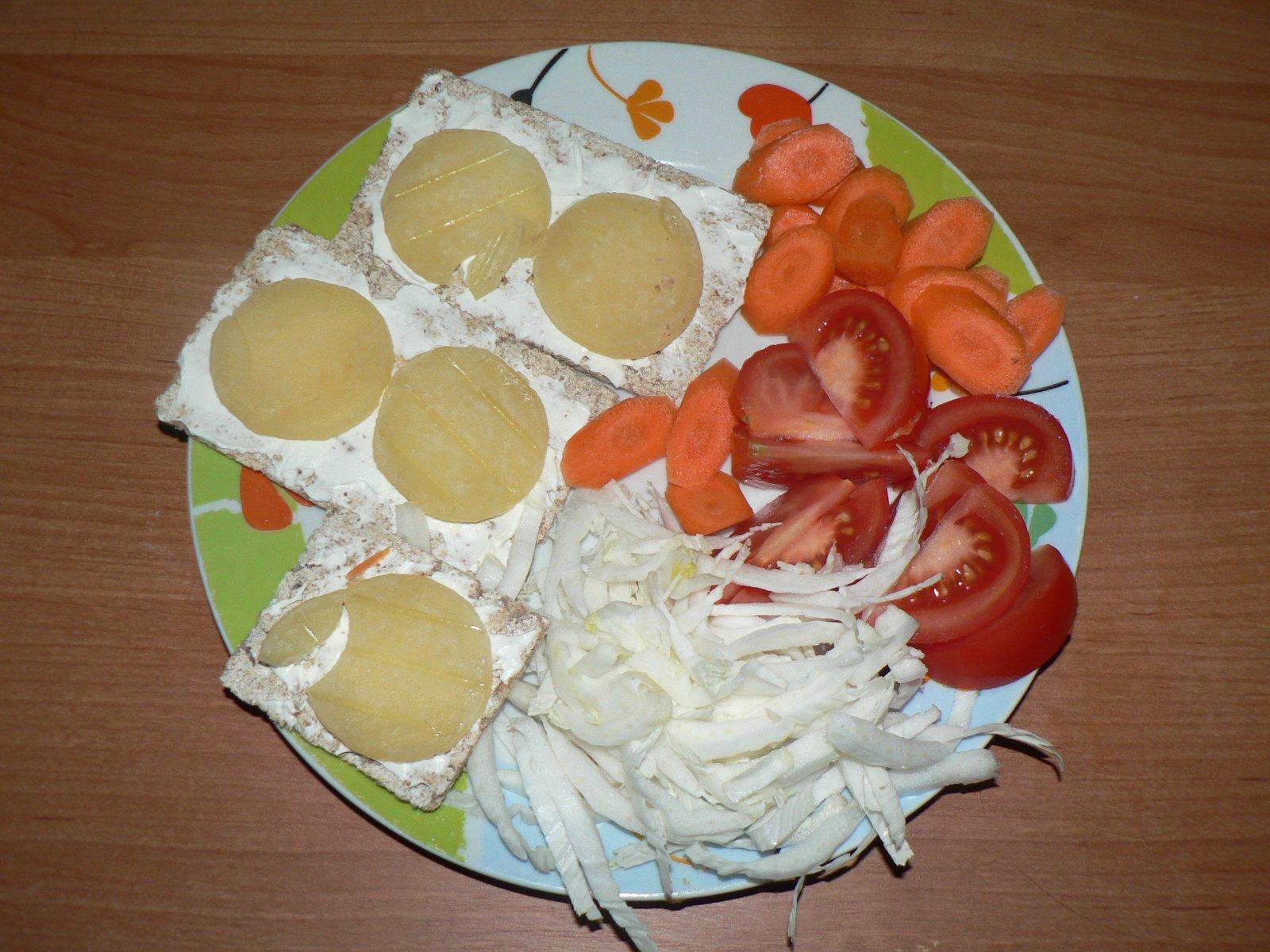 VEČEŘE: "knekebrot" s trochou gervais light, tvarůžky, zelenina