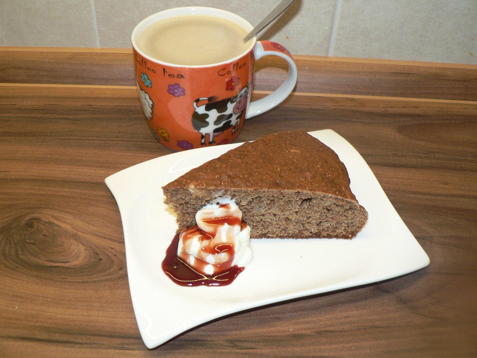SNÍDANĚ: banánový chlebíček (bez másla či jiného tuku) s para ořechy, malé caro