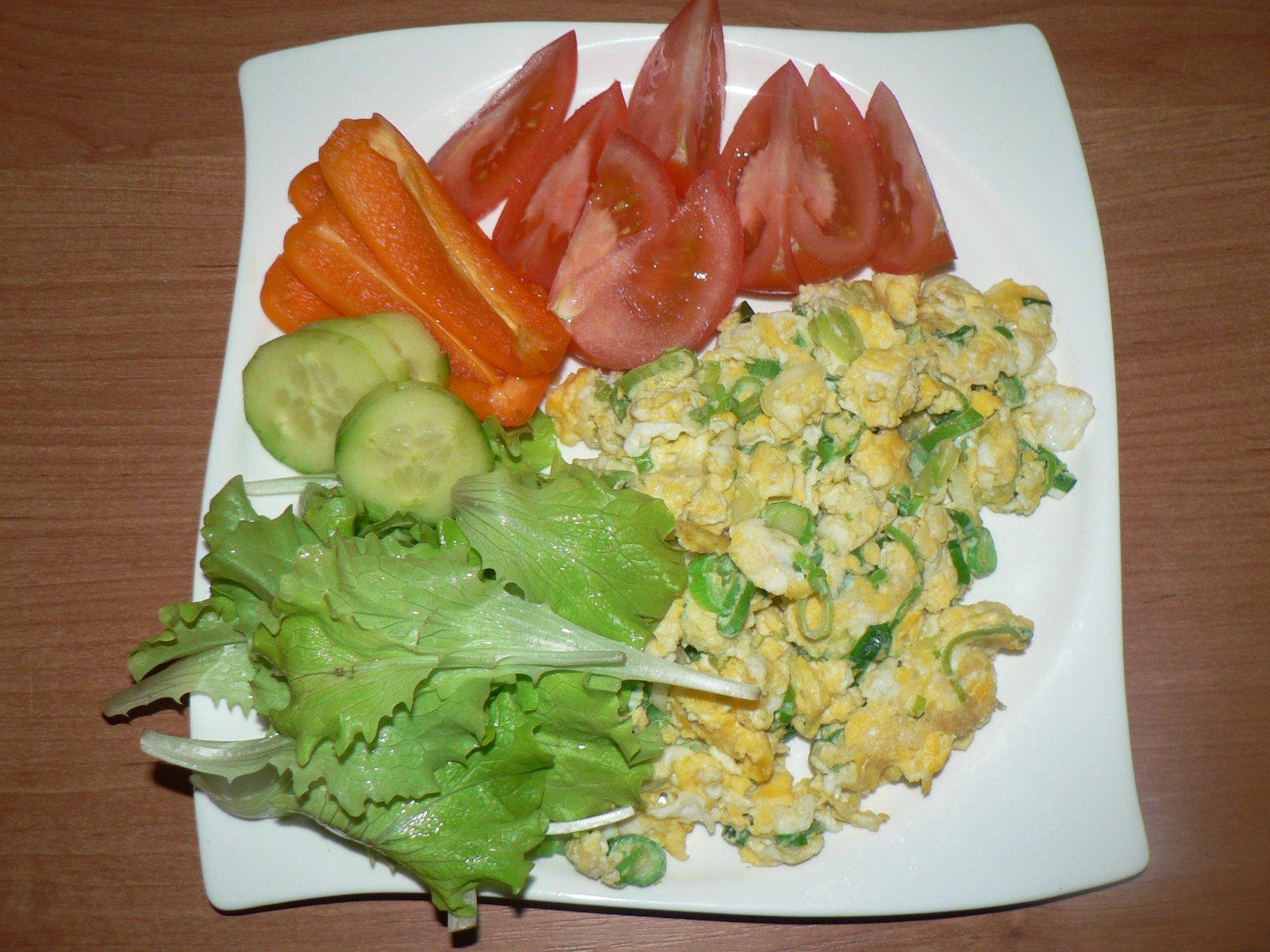 VEČEŘE: míchaná vajíčka s jarní cibulkou, zelenina