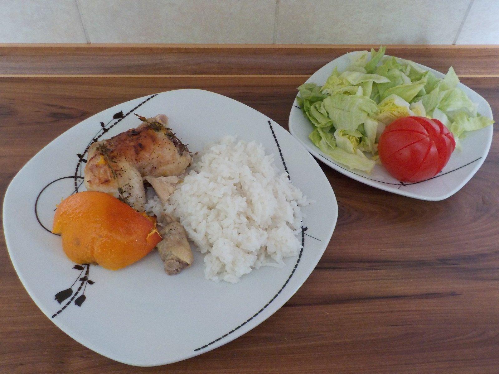 OBĚD - (vařil manžel 😃 ) kuře pečené na čerstvém tymiánu a citrusech, rýže basmati, zelenina