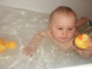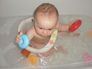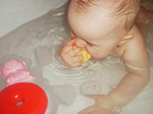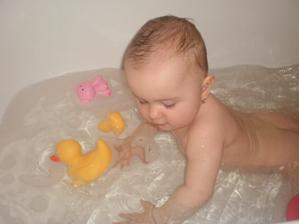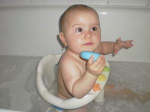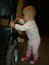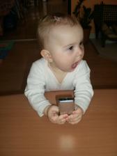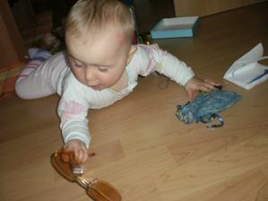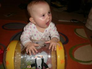 Hezky si sama stoupnu a pochoduji okolo nábytku...🙂 Umím dělat čerta ( vyplazuji jazyk ), lezu po čtyřech, krásně se posadím k hračkám i ze stoje.