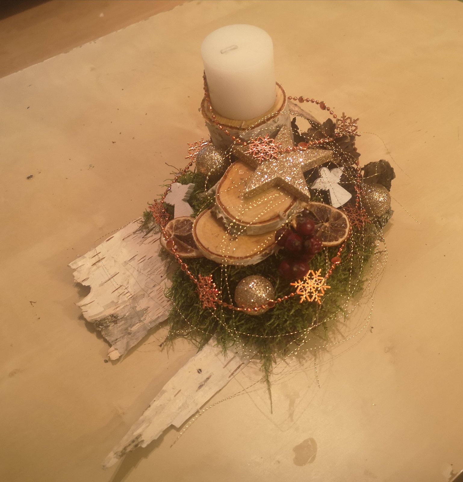Vánoční dekorace na březové kůře
