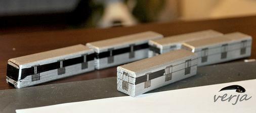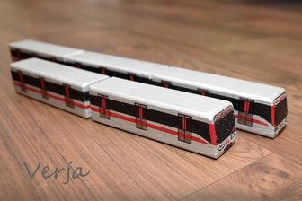 Syn si rok přál metro - asi problém hodně pražských rodičů. Konkrétně soupravu z linky C - M1.Samozdřejmě aby jezdila na vláčkodráze. Tak jsem holt po nocích v obýváku vyráběla. Fotky nejsou nic moc, protože jsem musela fotit vždy v noci, aby neviděl.