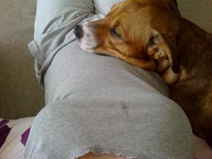 No ten náš zase nechápe to velké břicho a je trochu mimo,že se tam nevejde a tak mi lehá okolo krku.