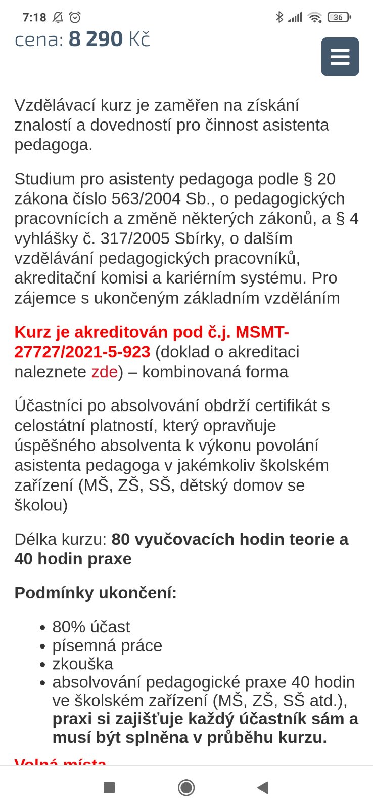 @veverka.terka Jj, taky to má být 80 hodin kurz (4 víkendy, tedy to vychází na 10 hodin denně) + 40 hodin praxe + závěrečná zkouška.
