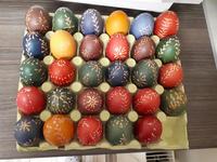 Ten je šikovnej, teda. S manželem taky zdobíme vajíčka voskem, ale děláme jen jednoduchý jednobarevný :D