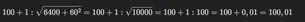 třetí příklad. nemůžeš odmocnovat součet každý zvlášt. prvně musíš sečíst a až pak odmocnit. Tedy pod odmocninou máme číslo 10 000 a to po odmocnění je 100, tedy máme 100+1:100=100,01