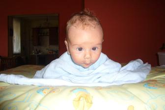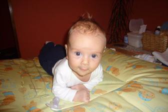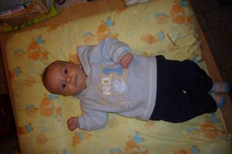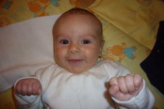 Dnes má Sebulka přesně 4měsíce a je moc šikovnej.Už se snaží otočit a pokud mu pomohu tak už to zvládnul jen ta ručička tam pořád překáží.Chce si pořád sedat a rád je na bříšku.Neustále má ručičky v pusině a slintá 🙂))Přes den o našem chlapečkovi skoro nevíme a v noci se poměrně často budí ☹Snad se to co nejdřív změní...Jinak se Sebík otočil poprvé na bříško ve 4 měsících a 1 týdnu.....