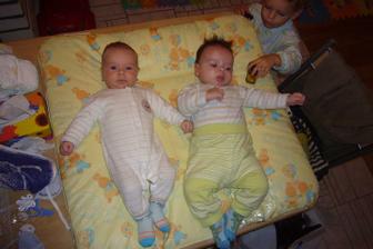 Dnes je 5.1 2012 a dnešní den jsme byli se Sebulkou v poradně.Váží 6080g a 63,5cm a pan doktor říkal,že je moc šikovnej a že je vpřed ve vývoji.A to jsme měli i u Kryštůfka 🙂Mám doma šikulky 😀JInak dostal poprvé očkování a to hned 2x.Reakce zatím žádná jen spíš takovej mrzoutek....Je moc hodnej-hraje si sám a pořád houká a houká.Prdíky ještě máme,ale je to mnohem lepší-už se blýská na lepší časy.4.1 se kluci malinkou chvilinku koupali spolu.Sebík se řehtal jak blázínek a Kryštů se už konečně dočkal.Hrozně sse těší až budou věci dělat spolu.......