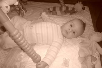 Dnes je 27.11 2011 a Sebulka už je spokojenej.Baví ho hrát si a ležet v lehátku a jen tak čučet na tv 😀To před týdnem ještě vůbec nechtěl...Papáme pořád z prsíčka a už si to zase maminka užívá.Po papání jsem spokojenej a rozhazuji úsměvy..