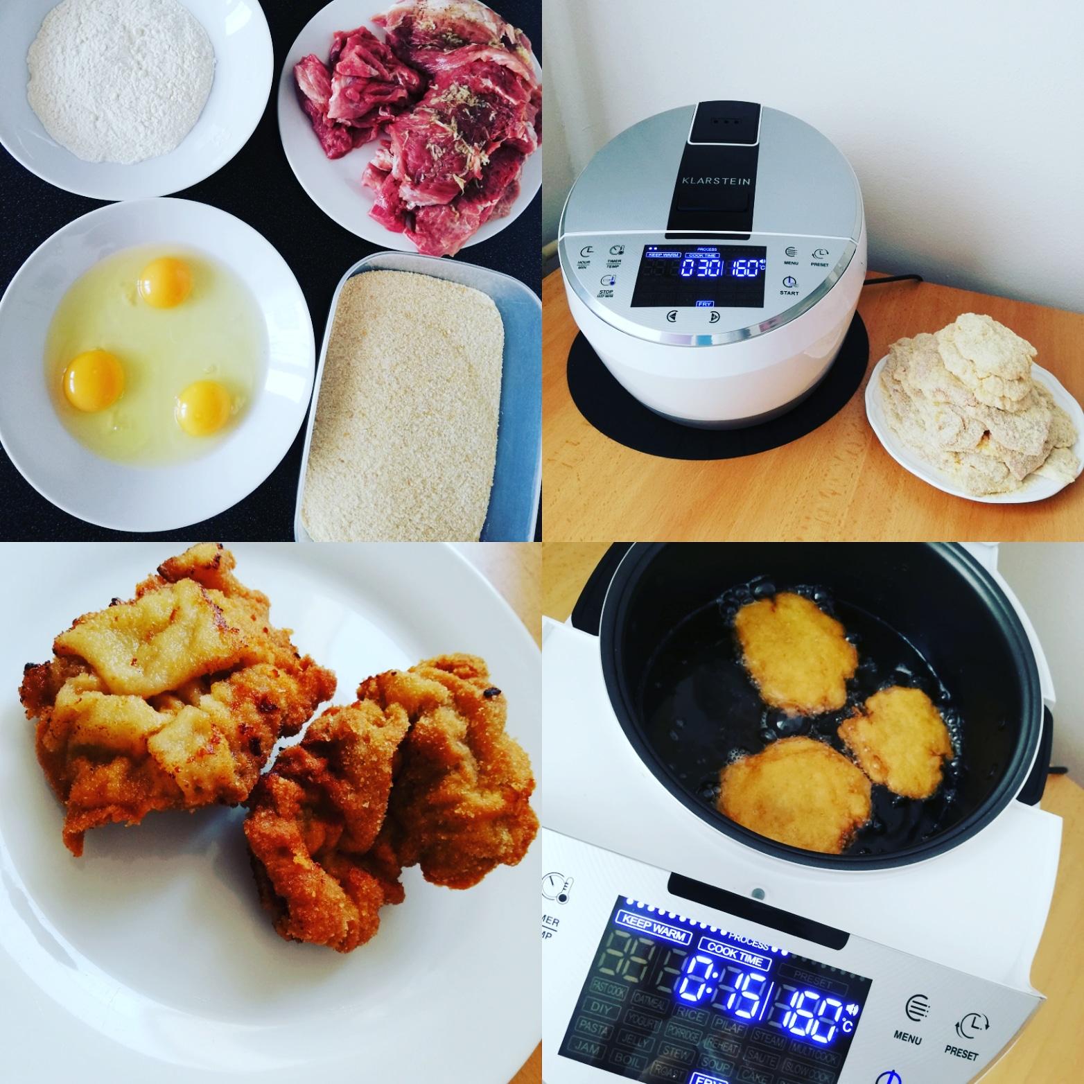 Na to jsem se těšila ze všeho nejvíc, jelikož jsem si chtěla fritovací hrnec pořídit. Jsem přesně ta, která miluje vymáchané hranolky a řízek v oleji. Bohužel, tady nastalo velké zklamání. Kdyby hrnec zvládnul o pár stupňů víc, byl by to skvělý friťák... Ale... Zvládne pouze 160°C což je na řízek i hranolky málo. Když jsem je dělala poprvé, byla jsem nadšená, protože jsem po 3 letech dělala hranolky jinak než v troubě. Ale přítel mi nadšení hned zkazil, jelikož mu nechutnaly. Podle mě nebyly špatné, vysušené ani nasáklé olejem. Ale nebyly to ty hospodské zlatavé hranolky. Před pár dny jsem na stejný způsob dělala řízek. Ani tady jsem doma neuspěla a po dvou řízkách jsem začala rozpalovat pánev. Řízek se dělal v hrnci celých 27 minut. Strouhanka na místech spálená, maso syrové a olej totálně přepálený. Škoda toho, ale určitě nebudu házet flintu do žita kvůli jednomu programu. Navíc mě to i trochu chrání před nezdravým stravováním, jelikož bych si musela dělat hranolky denně.