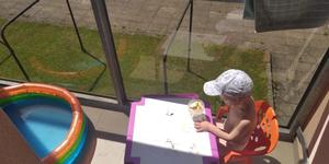 My jsme v přízemí,takže super pěkně zahradka,posezení,gril..a vše co se dá dát ven jako bazén,stan pro děti. Je to super nezávidím těm co jsou nahoře a mají jen mini balkonek.