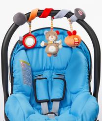- Na hrazdě jsou pevně všitá 4 očka, na které se zavěsí odjímatelné hračky - součástí balení jsou hvězdička, domeček, zrcátka a oslík