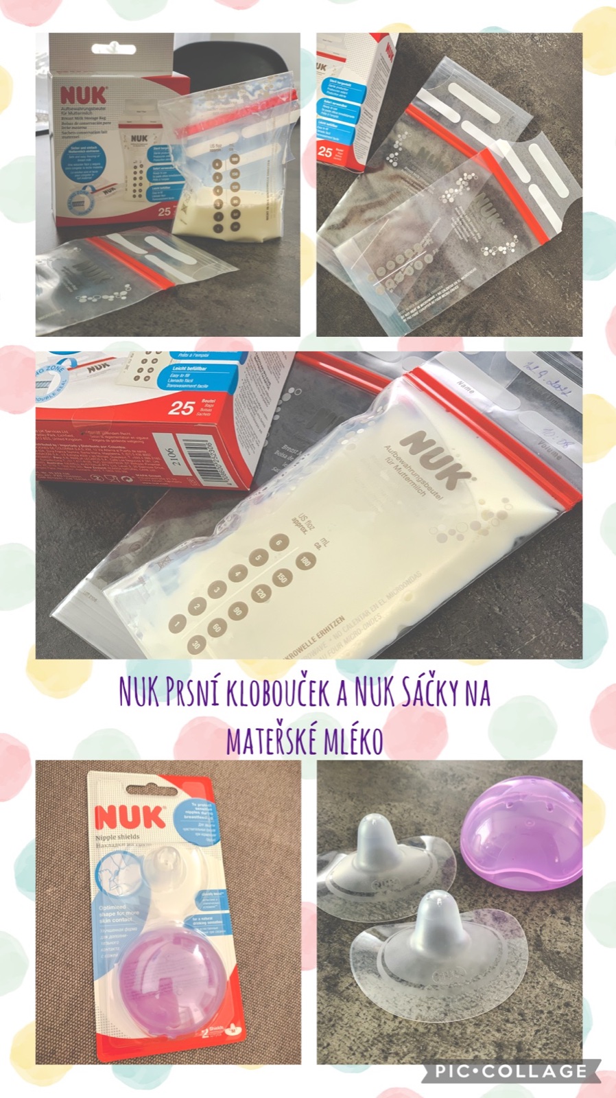 Jako další pomůcky při cestě kojením se vám, maminky, mohou hodit #nuk Sáčky na mateřské mléko a NUK prsní kloboučky.