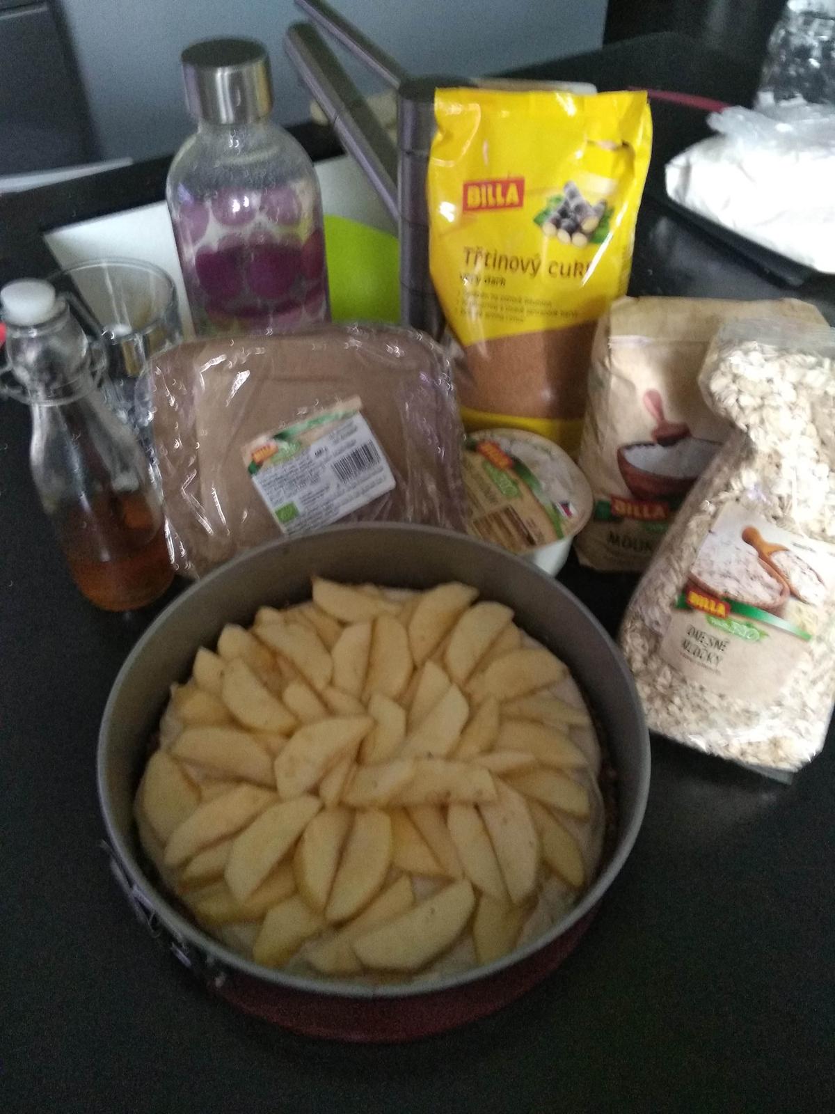 A byla jsem velmi překvapená, že mě do testování bio produktů v Bille vybrali. K testování jsem si vybrala prodejnu v Přerově v Galerii Přerov, kam chodím nejčastěji. Ale když jsem přišla na prodejnu, tak nikdo o žádném testování nevěděl a čekala jsem několik dní než se vše vyjasnilo. Nicméně všichni se snažili, abych své poukázky měla rychle u sebe a mohla se pustit do testování 🙂. A tak jsem se do toho pustila... Při prvním nákupu padla poukázka na 300 Kč, za kterou jsem nakoupila jablíčka, tvaroh odtučněný, farmářský jogurt, krémový sýr (typu lučina), sýr gouda 48% tuku, rajčata cherry, mouku pšeničnou - celozrnnou a zelený čaj. A už v obchodě jsem si skládala, co dobrého upeču. Jasná volba padla na jablíčkový koláč, který moji kluci mají moc rádi.