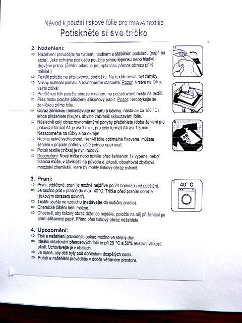 Milé nakupující, v případě potřeby jsem do alba s nažehlovačkami vložnila návody na nažehlení. Jeden návod je na nažehlovačky na světlé textílie a druhý na barevné. Ať se vám nažehlení daří a děti dělaj parádu 🙂...zdravím