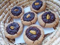 Recept: 200g jáhel jsem rozvařila ve vodě spolu se dvěma lžícemi brusinek a jednou lžící datlí (cca 6 kousků). Nechala jsem vychladnout a společně s 1/2 tofu rozmixovala dohladka. Postupně jsem přisypávala mouku (hl. rýžovou a pšeničnou celozr.), dokud těsto nezhoustlo tak, aby se daly tvořit kuličky (příště přidám víc, aby se tak nerozjely jako tyhle🙂). Mokrýma rukama tvoříme kuličky, které dáme na pečící papír a doprostřed promáčkneme ďolíček na náplň. Náplně můžete použít podle chutí - tohle měly být povidla bez cukru, ale otevřela jsem špatnou sklenici, takže nějaká rybízová směska🙂. Posypka- vlašské ořechy s kapkou medu a kouskem alsanu. Pekla jsem na 190 stupňů cca 20-25 minut.