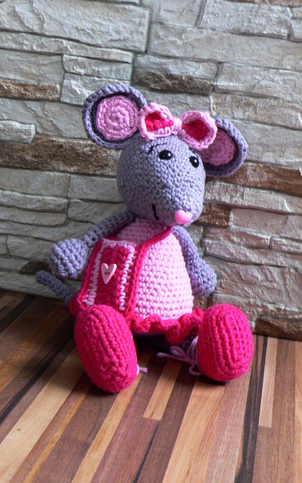 autor@leny86 Myška 28,5cm vysoká, materiál Bavlna (45%) + acryl (55%), výplň PES kuličky (vhodné i pro alergiky), bezpečnostní očička i čumáček v tělíčku jsou rolničky ( ty jsem zabezpečila igelitovým sáčkem aby se hračka dala prát, a rolničky tak ochránila před vodou a hračku před případnou rzí od rolniček přece jen je to kov ). Rolničky jsou pro miminka příjemné na poslech - tím že jsou obklopené a "utlumené" výpní .