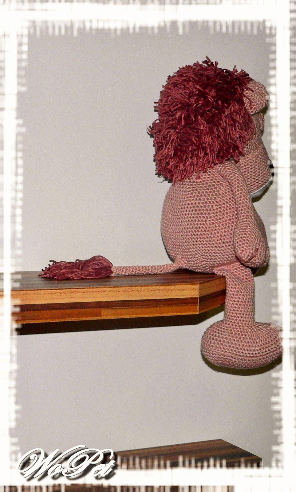 Háčkovaný lvíček (dle návodu od Kamlin z FLéru), materiál bambus + bavlna, výplň PES kuličky - nesléhavé, hypoalergení. V tělíčku rolnička, v pravé pacce pískátko (pískne po zmáčknutí packy). Velikost lvíčka sedící 31cm (i s hřívou), natažený celkem 46cm (i s hřívou).