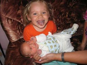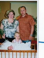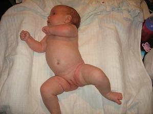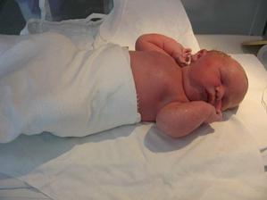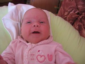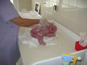 V neděli 2.8.jsme chtěli s manžou jít do bazénu.Já šla ještě před tím na záchod a zjistila,že mi odelša hlenová zátka.Tak z koupání nic nebylo.Manža řádil v bazénu sám.V noci jsem se super vyspala a měla před sebou celý týden bez starší treperendy,kterou jsme nechali u babičky.V pondělí 3.8. o půl 6 jsem šla na záchod a napít se.Chtěla jsem si i udělat snídani,ale byla jsem tak líná,že jsem zalehla zpátky do postele.Ani ne za 5 min jsem cítila lupnutí a začala mi téct voda.Tak jsem volala na manžela,který se chystal do práce,že nepojede do práce,ale do porodnice.Šla jsem se v klidu osprchovat a to už jsem cítila malé kontrakce.Tak jsme sbalili tašku a jelo se.V porodnici ma natočili ozvyčky a domluvili jsme se na půl 9.Manža zajel ještě pro originál oddací list a foťák.O čtvrt na 9 už jsem byla nachystaná,manža už taky dorazil.O půl 9 jsem byla už na sále a přesně v 8,42 vykukla na svět naše druhá krásná holčička Linduška.Vážila 4190 g a měřila 47 cm.Při vytáhnutí z bříška hned krásně plakala.Díky epidurálu jsem ji mohla hned vidět.Manža ji pak nafotil při koupání a měření a vážení.O půl 10 skončila operace a převezli mě na pokoj.Malou mi přinesli ukázat až na večer.V nemocnici jsme museli zůstat o den déle,protože malá málo přibrala.V neděli 9.8 si nás hrdý tatínek a sestřička Lucinka odvezli domů.