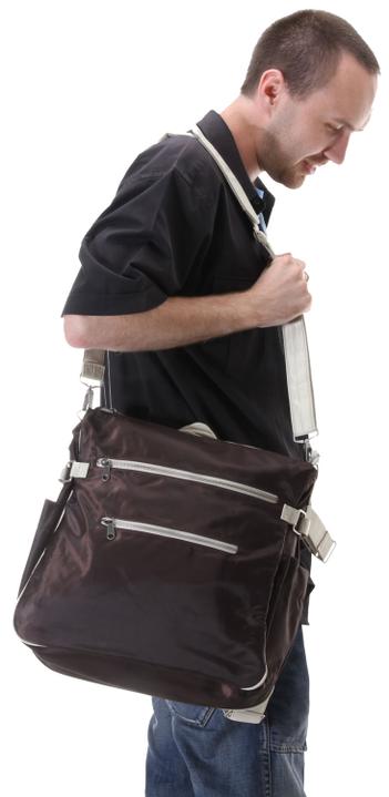 Taška je nejen na kočárek, ale lze ji nosit i přes rameno nebo jako batoh.