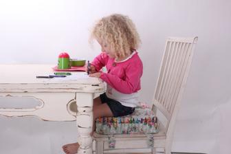 Podsedáček Mi booster je parádní pro děti, které ještě nedosáhnou na stůl, ale už se jim nechce sedět v dětské židličce. Nebo taky na cestování! Připíná se k židličce, součástí jsou voskovky a omalovánky. Dokonce i zásobník na pastelky na straně. Vše se dá sundat a vyprat!