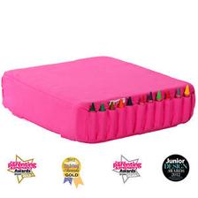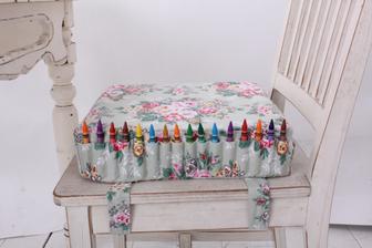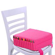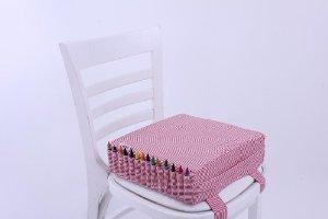 Booster je vlastně takový podsedák, který lze připevnit k židli pomocí dvou párů popruhů s nastavitelnou délkou na plastovou sponu, na bocích má zásobník na pastelky, které jsou také součástí balení včetně Minene omalovánek.
