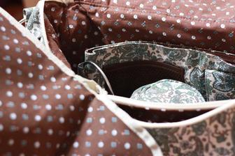 Taška má 2 velké přihrádky, které jsou oddělené velkou kapsou na zips, obsahuje rovněž oddělitelnou taštičku, která může být použita k přehlednému uschování osobních věcí. Tuto malou taštičku můžete také použít odděleně na kočárek tehdy, když cestujete nalehko.