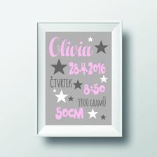 Nabízím zhotovení dětských plakátů, které budou nádhernou dekorací do každého dětského pokojíčku a zároveň vzpomínkou na jeden z nejkrásnějších momentů vašeho života.