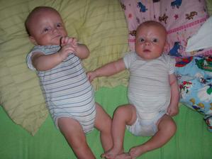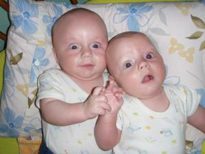 Máme 4 měsíce a váhy Petr 7kg/65,5cm a Lukáš 6,1kg/63cm