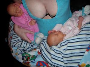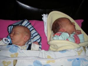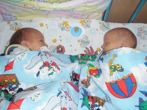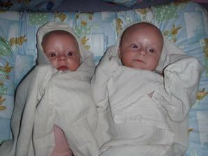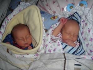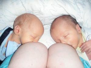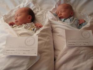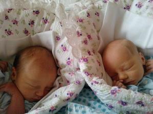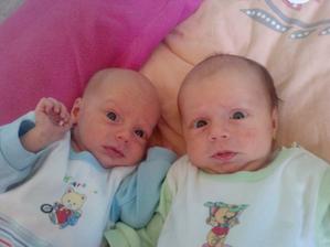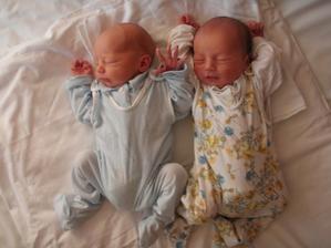 Naše dvě vymodlené zlatíčka vykoukli na svět 26.2.2010 v 8,20 a 8,22 v 38tt+4 po plánovaném císařském řezu ve spinálu ve Šternberku. 4.3.2010 jsme byli propuštěni domů. Hurááááá.