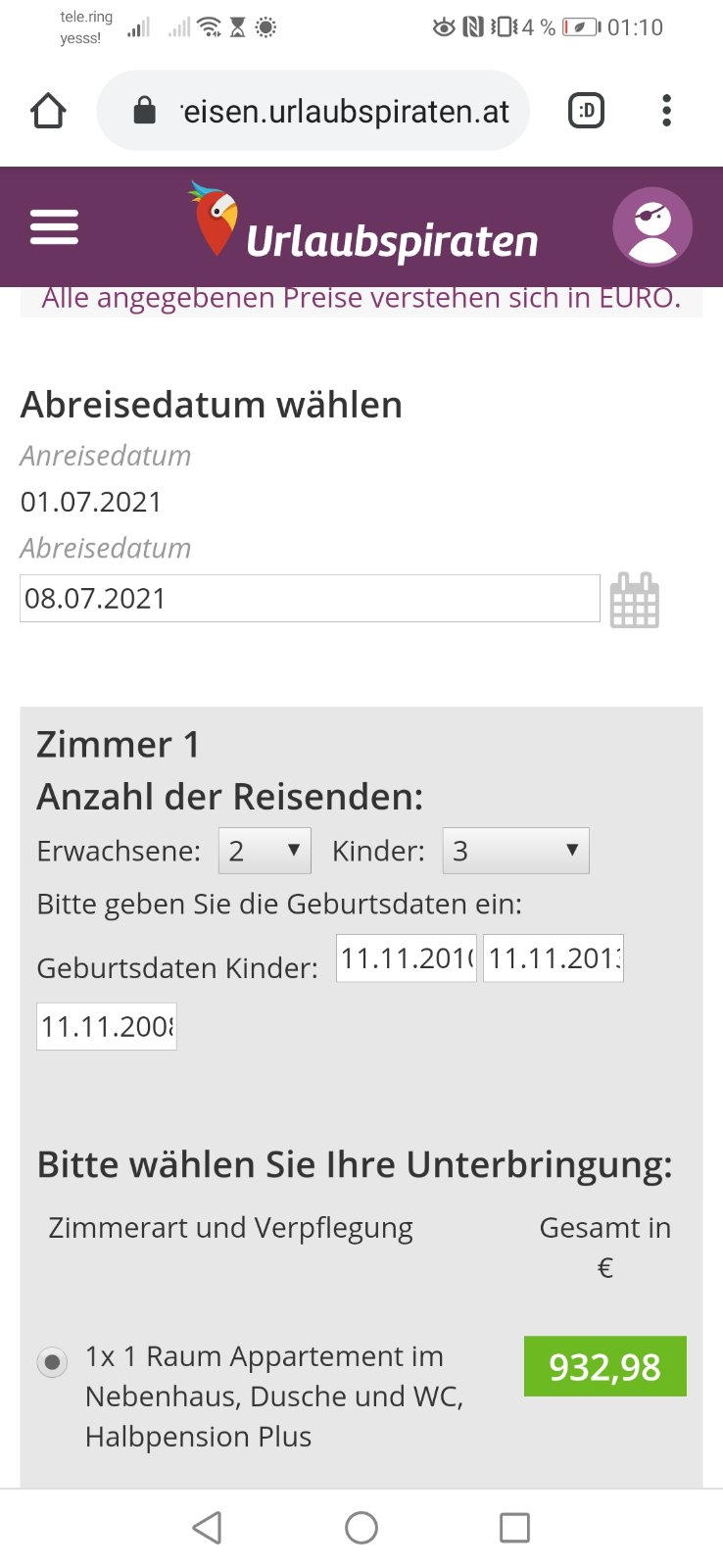 @veronicka89 Chvilku mi trvalo, než jsem přišla na to, že oni chtějí příjezd v neděli, protože od soboty mi to nechtělo nic najít, ale fakt že jo, vychází to do 1000 euro za všechny, mám tam i data dětí (nejstaršímu už bude 16, takže se asi počítá jako dospělý), včetně té polopenze! No teda, díky za tip, musím si to pak pořádně pročíst ještě doma, večer v klidu.