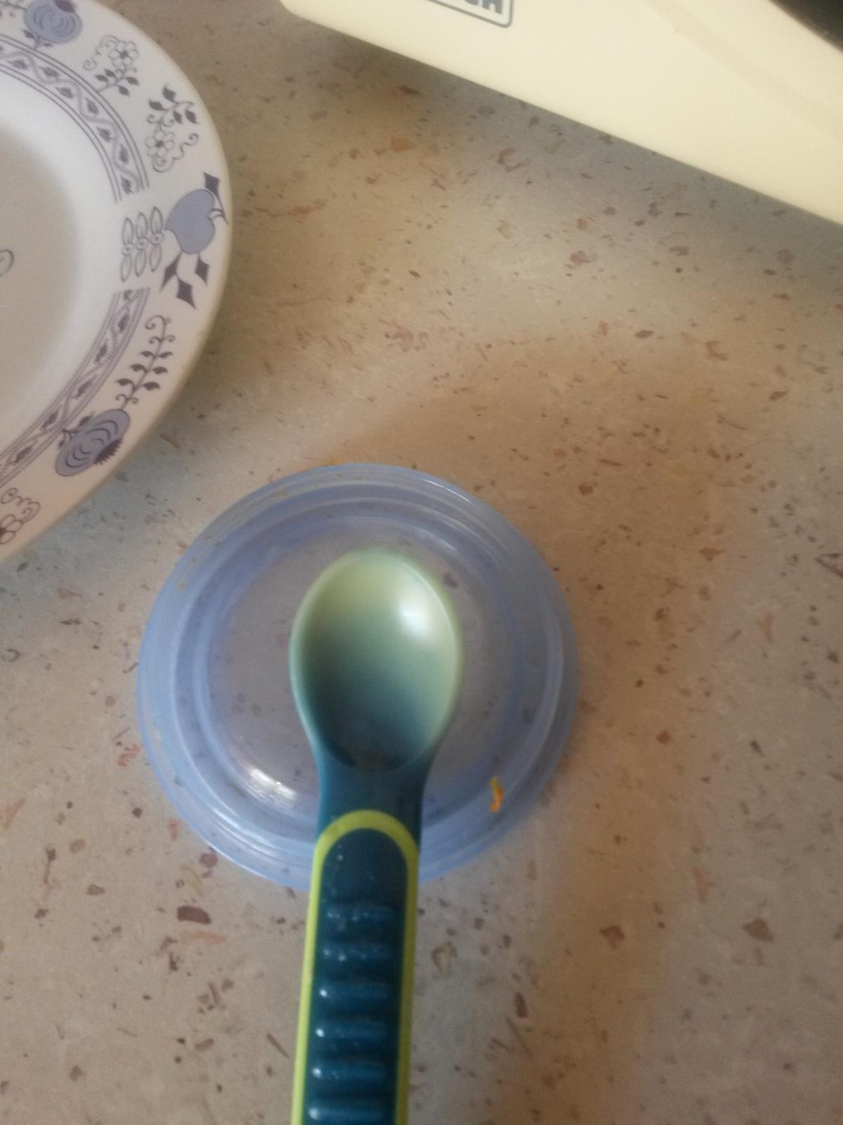 Jinak ve srovnání s lžičkou, kterou jsme doteď používali je měkčí, hlubší, ale zůstává na ni zbytek jídla, takže by to asi chtělo trošku zúžit přední část lžičky