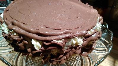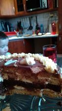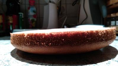 punčovinu, kterou dotvarujeme nerovnosti na obvodu (čokoládový korpus byl kupodivu menší) a uděláme horní vrstvu dortu