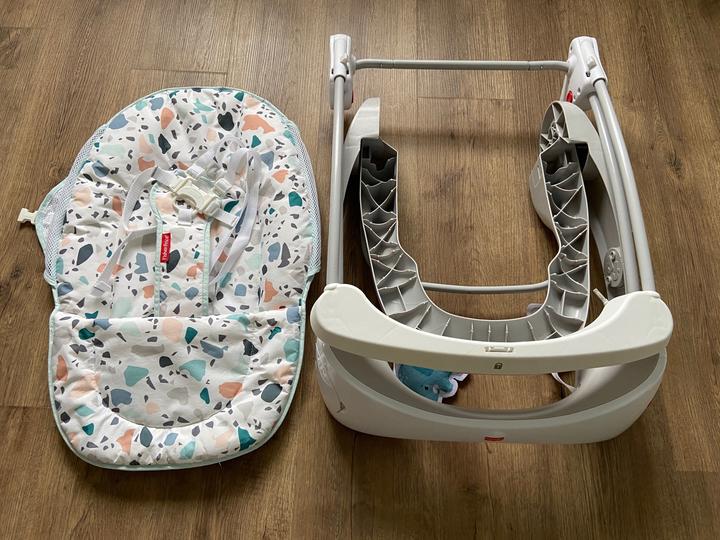 Potah na přenosnou houpačku je vypraný 👍 Je zase jako nová 🤩 Tentokrát to bylo naše poslední praní. Kubík nám z houpačky vyrostl a přešel na sedátko Terrazzo, které si střídají s Nelinkou.