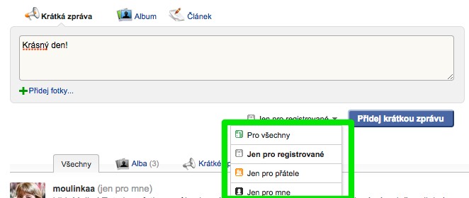 Dnes jsme spustili novou funkci. Ve svém blogu můžete pro každý svůj příspěvek nastavit, komu se bude zobrazovat (i ty, které již byly zveřejněny). A nejen to, přibyla možnost “Viditelné jen pro mne”.