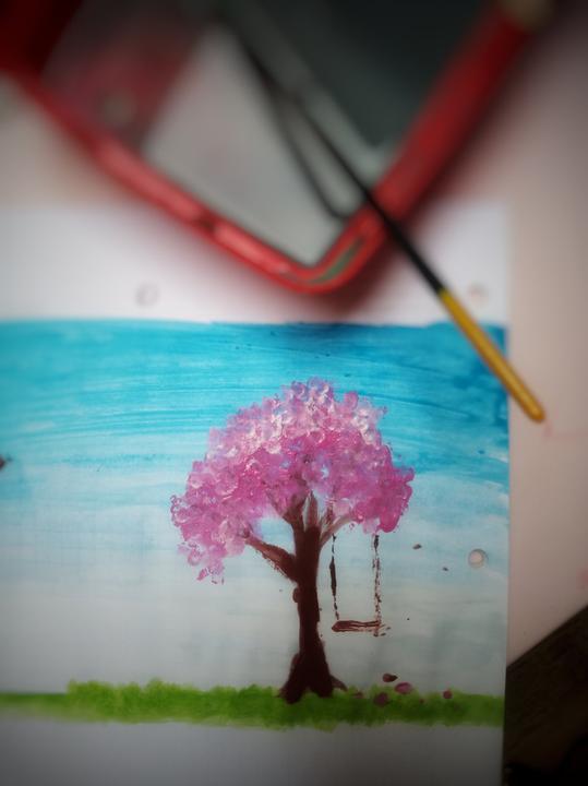 Výsledek Beníkova včerejšího barevného dovádění. Maloval přímo na zadní část zlomeného fotorámečku a je z toho dekorace do obýváku jak vyšitá.